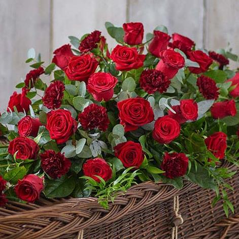 Rose and Carnation Casket Spray Red Large